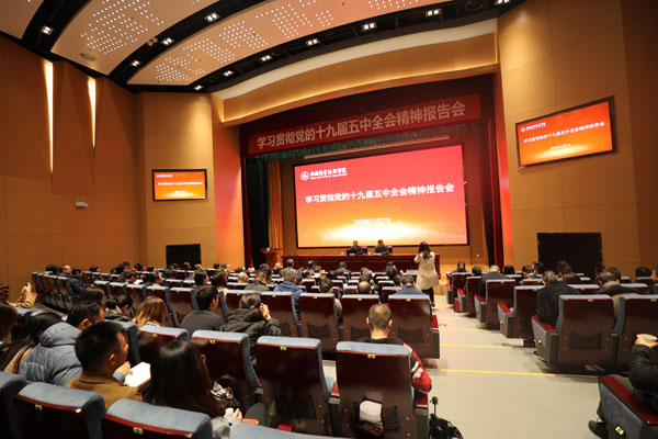 为认真学习贯彻党的十九届五中全会精神,开启学校发展新征程,11月26日上午,球友会app最新版下载举办专家报告会暨党委理论学习中心组(扩大)学习会。校领导、全体中层(含助理)干部、全体思政课教师、全体辅导员、部分学生代表等近200人参加报告会。会议由校党委书记朱爱胜主持。