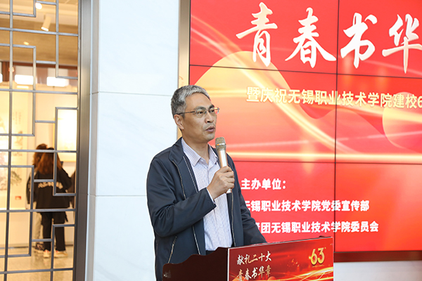 现场,校领导为本次展览的获奖师生代表颁奖。控制技术学院电气22041班李圣杰同学代表获奖同学发言,讲述了自己练习书法,从零基础的“小白”成长为“达人”的经历和自己挥毫写意告白祖国表白党的心路历程。