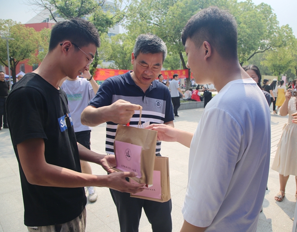 朱爱胜书记为恰逢生日的新生送上生日礼物并嘱托他们好好学习