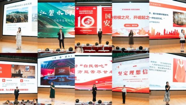 比赛现场,选手们以“绘民生之画卷,展人民之笑颜”、“最是书香能致远—习近平的读书故事”、“一江碧水向东流—习近平总书记和长江的故事”等为切入点,真实再现了在艰难环境和曲折经历中、在与人民群众水乳交融的长期实践中,人民领袖成长的足迹,向在场听众讲述了对领袖精神魅力和思想伟力的感悟,并结合自身成长,聆听时代声音,阐释了对世界、民族、国家、与时代的认识和思考,激发了现场同学的强烈共鸣。经过激烈角逐,郭子鸣、张湉湉获得一等奖,宋员员、奚可欣、吕闻清、张娇获得二等奖,邓奕航、崔张羽、包艳凯、孙东旭获得三等奖。