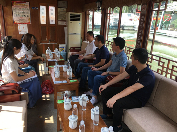 7月26日,外语与旅游学院院长杨丽教授一行3人赴江苏江南古运河旅游股份有限公司,就大运河旅游人才培养与合作、旅游与外语专业教学实践、文化旅游科研合作等进行调研。