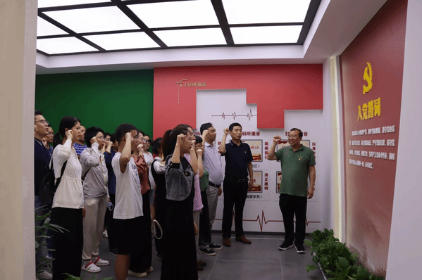 在展示馆现场,全体党员教师跟随讲解员重温了党规党纪,回顾了古今勤廉人物典型和杰出先贤的先进事迹,观看了廉政警示教育视频,思想政治上受到一次洗礼,达到了良好的警示教育效果。期间,教师党支部书记谢国萍带领全体党员教师重温了入党誓词。