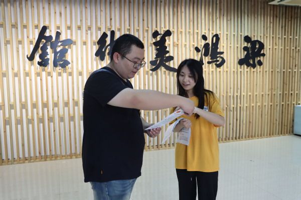 在梁鸿美术馆,江苏桥本数码科技有限公司总经理张鑫为大家介绍了美术馆发展状况、馆藏书画作品及文物修复与保护相关技术,特别是公司通过领先技术在无锡市文物修复与保护等方面取得的成果,并指导学生党员利用高科技记录技术进行传统文化传承、文物保护以及推进社会文明与经济发展。学生党员们在参观结束后,向参观美术馆的观众发放了反诈宣传单,宣传普及金融及反诈知识。
