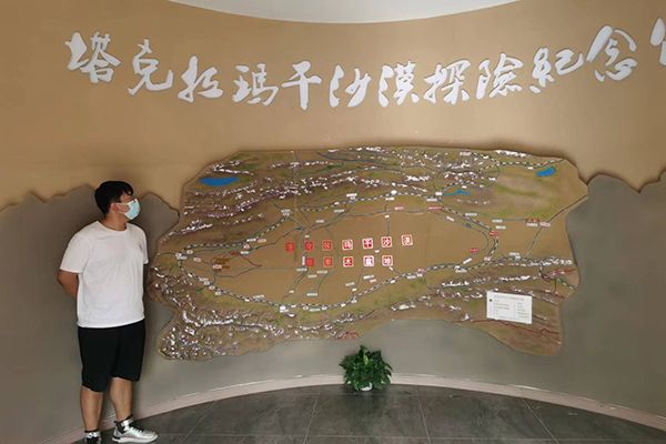周渲昊在新疆塔克拉玛干沙漠探险纪念馆参观学习