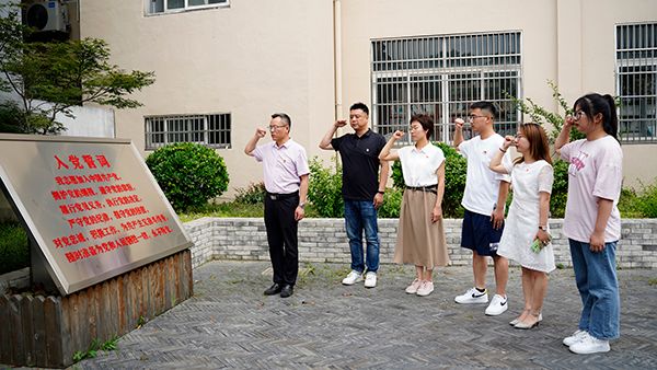 我校一行还参观了设计艺术学院学子暑期社会实践活动“手绘桃‘乡’”墙绘作品,随后来到无锡青年抗日流亡服务团纪念馆(简称“锡流”纪念馆)开展参观学习。纪念馆用“涓溪汇洪流”、“踏上西征路”、“激发民族情”、“艰辛不畏苦”、“无悔报国志”五个部分,呈现出了1937年11月无锡沦陷前夕,一批爱国青年在中共地下党员的带领下撤离无锡,边流亡边抗日,辗转多省,行程千余里,最终到达南昌新四军办事处和武汉八路军办事处,全部投身于革命队伍的那段峥嵘岁月。师生党员们纷纷表示,要弘扬“锡流”精神,弘扬革命先烈们崇高的家国情怀、顽强的斗争意志、坚定的理想信念和不屈的民族脊梁。参观学习结束后,苗勇带领党员同志们重温入党誓词,回望初心使命,强化思想入党。本次活动不仅加强了新入党学生对党组织的了解,也使老党员更加坚定了听党话、跟党走的信心和决心。