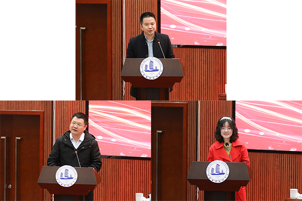 大会在国歌声中隆重开幕。李丁代表全市科技系统致辞,指出要深入贯彻习近平总书记关于科技创新、区域协同的重要讲话指示精神。无锡正精准对接国家重大战略,深度融入长三角一体化发展格局,积极顺应新一轮科技革命和产业变革趋势,高质高效推进无锡太湖湾科技创新带建设,加快打造国家级新区和新发展理念实践示范区,她希望我校围绕无锡现代产业发展,促进自主创新,在推动科学发展上展现新作为,政校双方畅通联系渠道,坚持以人为本,共同在建设人才强市上取得新进展。张鹏飞代表科协系统对我校顺利召开第三届科研会议表示祝贺,他在致辞中强调,学校要把此次科研大会作为服务无锡产业发展,共同深化“科创中国”试点城市建设新的起点,进一步深化“四服务”,共同推动无锡物联网、高端装备、大数据、人工智能与实体经济深度融合,共结“科创”之果。