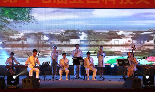 晚会上,即将代表我校参加全省大学生艺术展演的民乐合奏《烟雨江南》、舞蹈《我生长的地方》、《大运河》以及男声合唱《天路》、《月之故乡》等节目也令到场观众眼前一亮。(王卫东 张严)