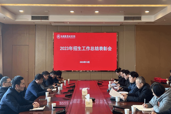 12月21日下午,学校在综合楼 F201会议室召开2023年招生工作总结表彰大会。各招生片区负责人和招生骨干、招生先进个人、招生办相关负责人等40余人参加会议。副校长强伟纲出席会议并讲话,会议由招生办主任房磊主持。