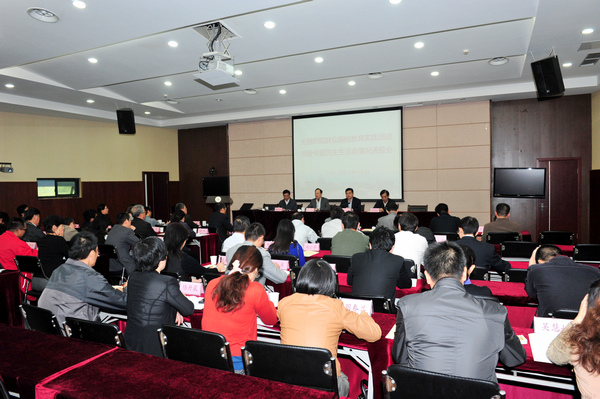 10月17日上午,我校在国际交流中心二楼报告厅召开会议,通报党委领导班子专题民主生活会情况。省委教育实践活动第十八督导组全体成员,校党委领导班子成员,近五年退出校领导班子的老同志,全体中层正职干部,纪委委员及教授、博士、民主党派代表等出席会议。