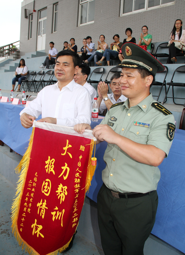 我校军训办主任、人武部副部长陶有远宣读了军训表彰决定,2个军训营、8个军训连队获先进集体荣誉,215名同学获军训先进个人称号。校党委书记朱爱胜向承担我校军训任务的人民解放军部队赠送了锦旗,副校长周桂瑾作军训总结,代表学校向承担承训部队全体教官表示衷心的感谢和崇高的敬意,向圆满完成军训任务的全体新同学表示慰问和祝贺,并要求同学们将军训的收获和成果巩固下来,贯穿到今后的学习和生活中,努力把自己培养成全面发展的高素质人才。(宣传部)