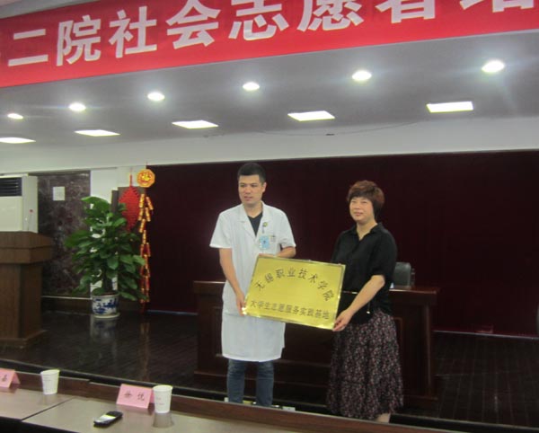 当天,第二人民医院团委书记徐嘉医生和我校团委书记徐悦共同签订了“大学生校园志愿服务基地”合作协议。志愿者们通过医院组织的志愿服务培训中了解在医院担任志愿者的主要职责和注意事项等。在接下来的一周内,我校志愿者将在门诊自助挂号、皮肤门诊、影像科、眼科、检验科等多个岗位从事医护引导、服务讲解等志愿活动。(徐悦)