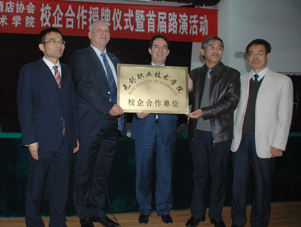 华坚副校长代表学校对此次活动的举办表示祝贺。Christophelia Lajus主席介绍了上海国际品牌酒店协会基本情况,并希望协会与学校加强联系。双方互授了“校企合作单位”的铜牌,随后,路演宣讲和应届毕业生招聘活动相继开展。