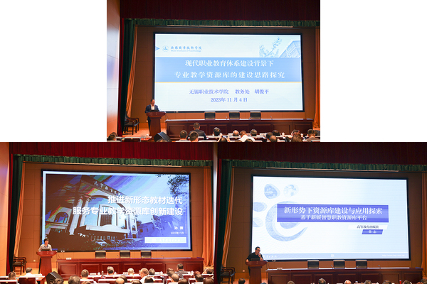 在专题报告环节,胡俊平处长作题为《现代职业教育体系建设背景下专业教学资源库的建设思路探究》专题报告。他围绕教育数字化转型和现代职教体系改革建设背景,对新版《职业教育专业教学资源库建设指南》目标要求、建设思路、建设任务、监测指标等逐一分析,提出各建设单位要更加强调顶层设计、更加强调建学管用、更加强调团队协作;高等教育出版社工科分社社长孙薇作题为《推进新形态教材迭代,服务专业教学资源库创新建设》专题报告。她详细解读了“三教”改革背景下的新形态教材建设的重要性和必要性,纸数融合、活页式、工作手册式教材和融媒体、交互式、智能化数字教材的属性和开发要点,论述了专业教育资源库配套数字教材建设的具体路径;高等教育出版社在线职业教育发展中心研发工程师常志作题为《新形势下资源库建设与应用探索——基于新版智慧职教资源库平台》专题报告。他围绕智慧职教资源库平台升级两个核心理念和三个设计原则,对新版智慧职教资源库平台建设框架及主要功能进行解读。结合数控技术、物联网应用技术等专业教学资源库建设实际,详细介绍了运行支持服务和数据服务。