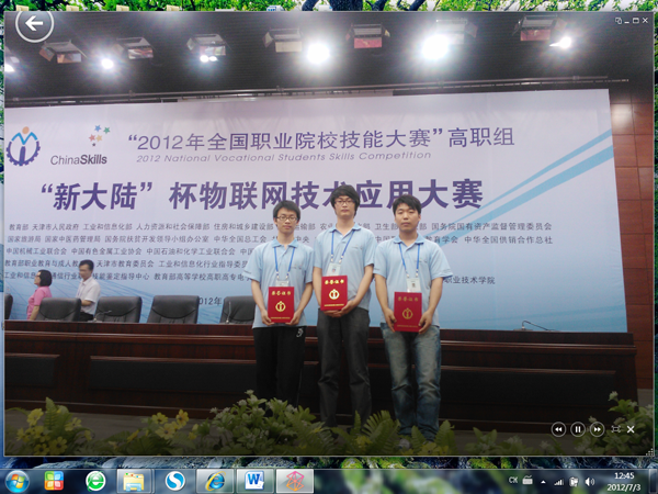 6月27日,由我校物联网技术学院陈天娥、黄能耿和邱小荣老师指导,张吉祥、魏玮、吴军组成的学生代表队赴天津参加物联网技术国赛获得二等奖(全国第五名)。