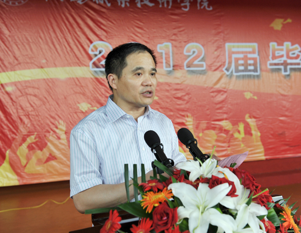 戴勇校长向全体毕业生致毕业贺词,回顾了本届毕业生中的优秀学子和先进事迹,历数了我校往届优秀毕业生反馈回来的经历和感悟,勉励大家诚实做人、勤奋做事,并寄语毕业生在新的人生征途上成为建设创新型国家和人力资源强国进程中的优秀建设者和领军型人才。(房磊 郁飞 魏艳)