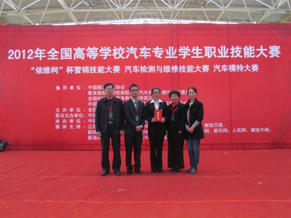 4月17日至18日,全国高等学校汽车类专业学生技能大赛总决赛在南京举行。我校由汪蕾、黄捷老师指导的汽车51031班彭婷婷和汽修51071班孙威威组成的代表队在营销技能赛项中荣获团体一等奖,由吕玫、赵健老师指导的汽车技术服务与营销专业51031班学生吴碧徽在汽车模特项目比赛中荣膺最佳人车合一奖。