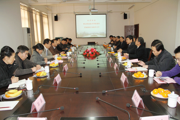 12月1日上午,邢台职业技术学院党委书记刘先进一行19人来我校考察,我校党委书记朱爱胜、副院长华坚及党办、学生处等部门负责人热情接待了来访宾客。