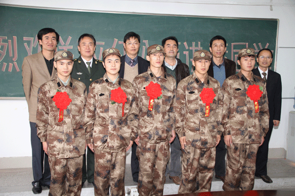 入伍学生与相关领导合影