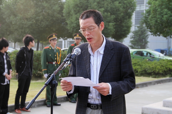 太湖校区的升旗仪式由团委副书记苗勇主持,外语系商务英语61132班承担升旗任务,全体师生员工在庄严的气氛中升国旗、唱国歌后,党委副书记谈向群发表了题为“继承革命先辈遗志 弘扬爱国主义精神”的国旗下讲话。