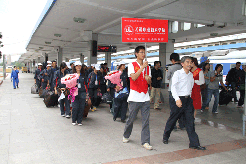 9月26日中午,学院华坚副院长带领学生处、团委相关负责人来到无锡火车站,迎接新疆籍高校毕业生适岗培训班学员。