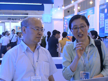 “资源云”体验展区展示包括数控技术专业在内的11个专业教学资源库建设项目。我院数控技术专业教学资源库经过3年多的建设,已经可以变化出多彩的应用方式,利用现代信息技术开发了形式多样的“海量”资源。数控专业体验展区的通栏标题“云卷云舒游资源云海 键起键落寻神秘宝藏”在展示大厅十分醒目。置身操作体验区中,与会嘉宾可以浏览,看看“云”到底有多少;可以驾驭,试试如何踏“云”而去;可以对比,想想“云”还能做什么;可以交流,找找是否还有更好的“云”。为了吸引与会嘉宾现场体验,合作企业西门子公司提出了体验抽奖的活动方式,提供了从西门子手表到苹果iPOD的丰盛奖品,并合作组织现场体验抽奖活动,与会嘉宾进入资源库真实体验后才能参与并填写调研资料,最终大奖苹果iPOD在闭幕式上由李进会长抽出。在整个展出期间,与会者十分踊跃。江苏省教育厅领导和专家亲自到展区了解展示情况,提出改进建议;数字化教学资源研制资深专家、西安交通大学副校长于德弘教授也到现场作了体验与指导。
