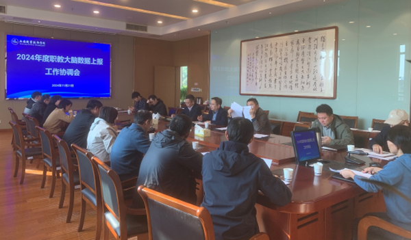 为贯彻落实《教育部办公厅关于加快推进现代职业教育体系建设改革重点任务的通知》精神,加快推进职业教育信息化标杆学校项目建设,逐步实现我校治理能力和治理体系的现代化,11月21日下午,我校在厚德楼201会议室召开2024年度职教智慧大脑院校中台数据对接工作推进会。