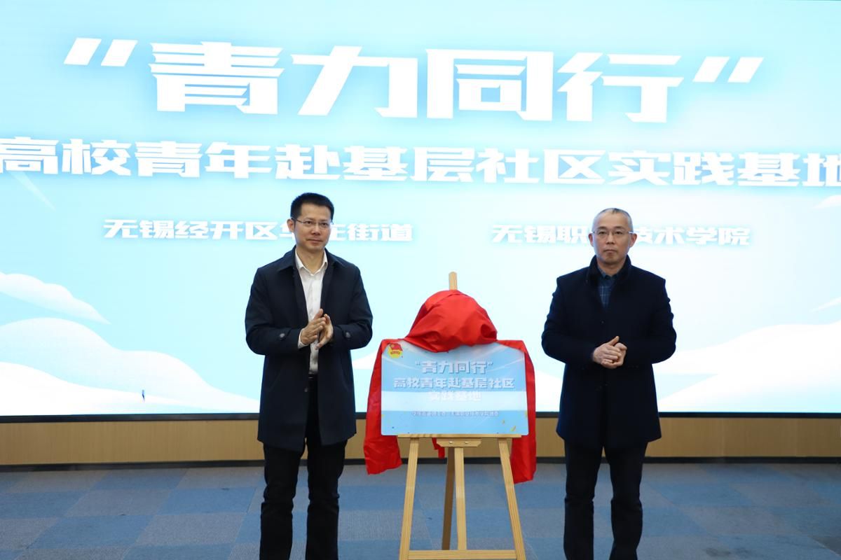 强伟纲和华庄街道党工委副书记、政协工委主任费裕其共同为项目揭牌。这是高校在无锡经济开发区所辖社区的首个实践基地,是校地合作在基层社区实践项目上迈出的新步伐。