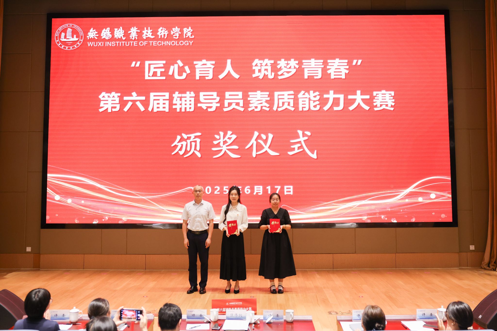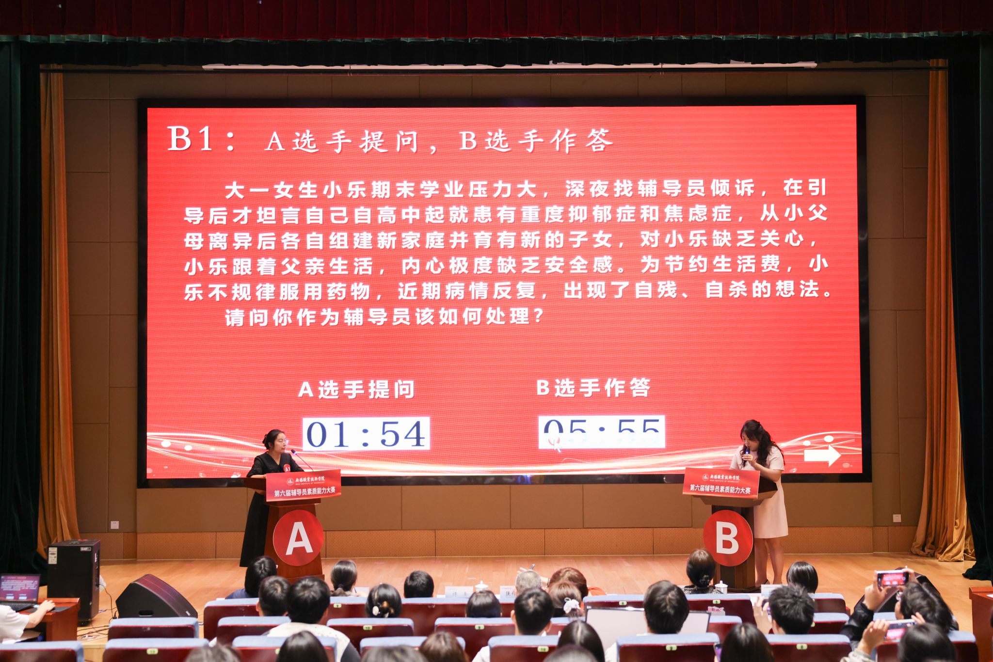 本次辅导员素质能力大赛参照江苏省高校辅导员素质能力大赛赛制,分为基础知识测试、案例研讨和谈心谈话三个部分。8名辅导员通过前期的基础知识测试初赛成功晋级决赛。在案例研讨环节,辅导员们面对复杂案例深入剖析、挖掘问题根源、总结工作规律。在谈心谈话环节,选手们以积极的态度、耐心的疏导与助演学生深入交流,展现出高超的沟通技巧与人文关怀。决赛过程中,参赛选手的精彩表现充分彰显了我校辅导员队伍扎实的理论功底、过硬的工作能力与良好的职业素养。经过评委们认真打分,最终华涓、葛星星获得一等奖,陈明媛、曾力立获得二等奖,庄中南、陈曦、朱健、夏鑫琥获得三等奖。