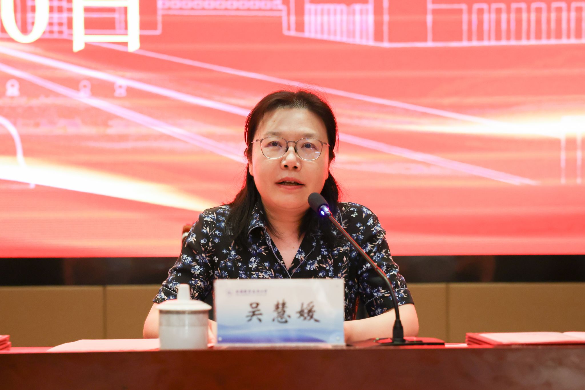 副校长吴慧媛主持大会,宣读了《第二批国家级职业教育教师教学创新团队名单》《江苏省教学名师入选名单》和《2025年江苏高校青蓝工程培养对象》。