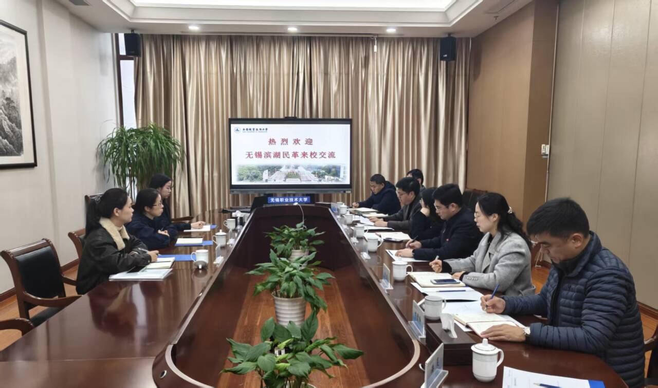 为推进高校毕业生人口导入相关调研工作,12月17日下午,民革无锡市滨湖区基层委员会主委、滨湖区人民政府副区长唐剑芳带队来校进行专题座谈调研,推动校地合作进一步走深走实。校党委副书记杨雪琴,组织部部长、统战部部长朱翔,相关部门负责人,校民革支部主委刘贵锋及部分民革党员陪同调研。