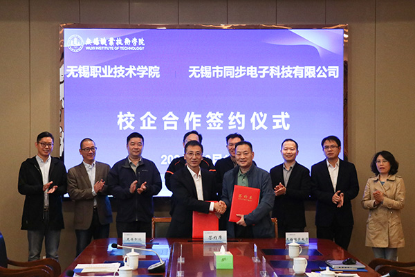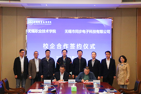 10月18日下午,我校与无锡市同步电子科技有限公司(下称“同步科技”)在综合楼F201会议室签约合作,并为实习实训基地和人才培养基地揭牌。同步科技总经理王永康、我校校长龚方红和科产处、教务处、控制技术学院相关负责人参加活动。