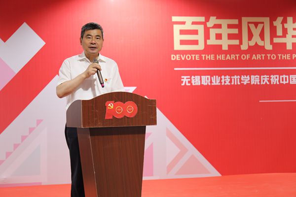 无锡广告协会副会长沈燕青在嘉宾致辞时表示,这次联展紧扣“百年风华,艺心向党”的主题,通过艺术作品和设计创作的方式向党的百岁华诞献上一份特殊的礼物,也是一次课程思政的创新探索,同时也搭建了专业交流、指导、合作与成果转化的平台。