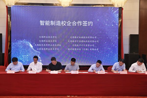 我校龚方红校长作为院校代表介绍了学校在智能制造人才培养和产学研合作方面的情况,重点介绍了近几年学校为区域行业企业智能化转型升级提供技术和人才支撑的案例和经验。我校作为江苏省机械职业教育行业指导委员会秘书处单位,积极引导和促进成员单位加强校企合作,提升职业院校服务产业发展的能力。本次活动通过前期深入对接,促成了球友会app最新版下载与无锡煤矿机械股份有限公司、无锡微研中佳精机科技有限公司,江苏信息职业技术学院与精利模塑科技(无锡)有限公司等多项智能制造校企合作项目签约,进一步提升了机械行指委的引领作用和资源整合能力。