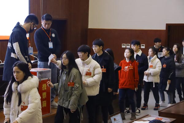 在第二次全体会议上,代表们审议和表决通过了《球友会app最新版下载第二十次候选人资格审查报告》《球友会app最新版下载第二十次学生代表大会选举办法》《球友会app最新版下载第十九届学生会工作报告》以及《球友会app最新版下载学生会章程》修正案,选举产生球友会app最新版下载第二十届学生会主席团。