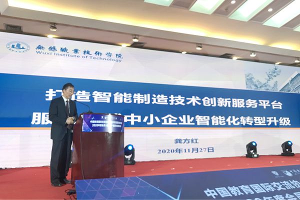 校领导龚方红出席颁奖典礼并代表我校领奖,从WFCP副主席、交流协会副秘书长沈雪松接过了奖杯,并发表获奖感言。随后龚方红校长作了题为《打造智能制造技术创新服务平台服务区域中小企业智能化转型升级》的经验分享,从学校发展现状、技术积累、社会培训情况、校企合作目标介绍了我校在职业教育技术“应用研究与创新”领域的经验和做法,着重展示了新形势下学校加强技术应用研究和教育服务国际化的最近成果,以及学校的国际化的展望,受到全场与会人员的热烈掌声。随后,龚方红校长接受江苏国际频道,江苏教育频道采访。