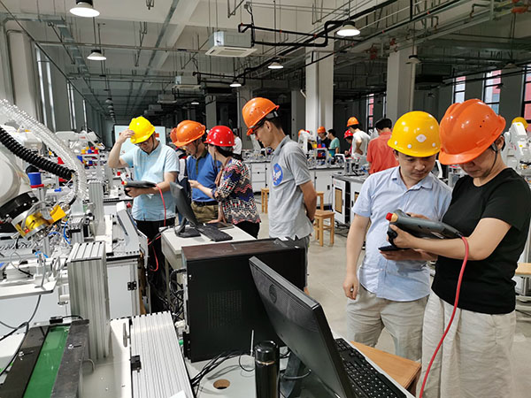 本次培训由教师发展学院组织、控制技术学院主办,40位学员来自控制技术学院、机械技术学院、汽车技术学院等具备具有PLC、工业机器人等相关基础知识的中青年教师,为期5天,参训教师需要了解工业机器人基本基本原理;掌握工业机器人示教编程、离线编程;掌握PLC与工业机器人的通讯以及工业机器人视觉应用。