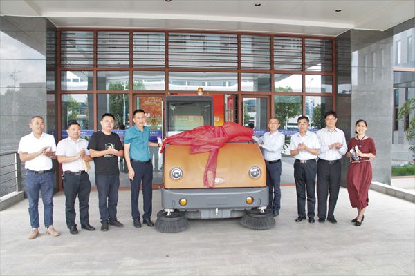 扬州金威环保科技有限公司总经理冯为民向母校捐赠一台扫地车
