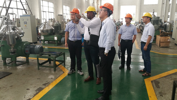 代表团一行首先深入生产车间,公司人力资源科吴正伟科长和外贸部李磊经理陪同代表团看望了现场实习的留学生,并详细介绍了公司主营业务、核心产品分离机、过滤机的制造工艺、产品特色和技术优势。在随后的南非留学生合作培养汇报交流会上,江苏巨能机械有限公司董事长牟富君致欢迎辞,他简要介绍了公司的基本情况、近年来取得的成就以及近期留学生的学习、生活、工作等情况。近年来,巨能机械积极响应国家“一带一路”倡议,努力践行“走出去”的号召,产品远销日本和新加坡、马来西亚等东南亚国家,公司拟在了解南非机械制造业现状以及分离机和过滤机等设备产业应用的前提下,积极拓展非洲市场。牟董事长强调,企业高度重视校企合作,尤其希望加强与球友会app最新版下载的紧密合作,进一步深化国际化人才培养和项目合作,为企业参与“一带一路”建设,服务“一带一路”国家人才培养水平,实现互利合作共赢。