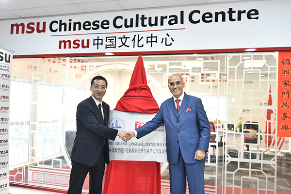 在马来西亚期间,代表团一行访问了马来西亚管理与科学大学(MSU),校长MOHD SHUKRI AB YAJID拿督举行了欢迎仪式。会谈中双方一致认为,通过三年来的精诚合作,两校在教育国际化方面多点开花,硕果累累,把中马两校优质的教学资源成功转化为教育发展的新动能,今后将在教师联合科研、学生海外实习等方面进一步加强合作。会谈后,双方校长共同为“球友会app最新版下载-马来西亚管理与科学大学汉语中心”揭牌。汉语中心自去年4月试运行以来已面向651名MSU各国学生开展了45000人次的汉语培训,有效促进了中外文化交流。