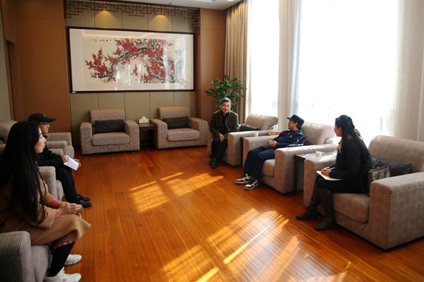 我校朱爱胜书记(右三)与检查组成员交流