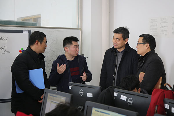 校党委书记朱爱胜听取了物联网技术学院黄翀鹏老师讲授的“信号和通信系统”课程;龚方红校长听取了机械技术学院吕伟文老师讲授的“工程力学A”及汽车与交通学院张国芬老师讲授的“汽车技术基础II”课程;周桂瑾副书记听取了艺术与设计学院陆瑶老师讲授的“游戏动画制作”课程。校领导在听取课堂讲授之后,还与任课教师、学生进行了交流,全面了解新学期师生的教学、生活情况。此外,周桂瑾副书记、强伟纲副校长重点对实训室的课堂教学情况进行巡查。