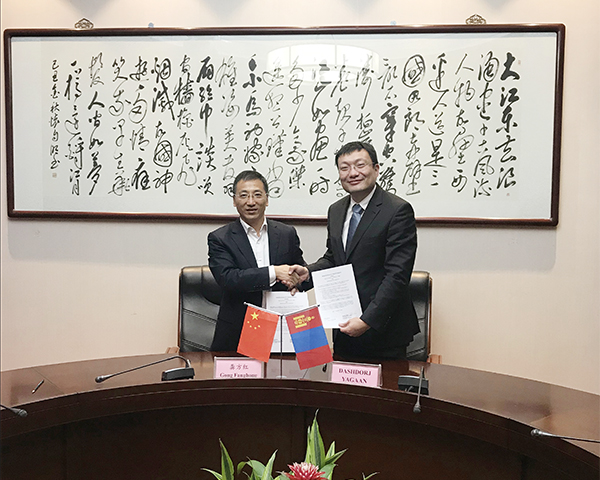 龚方红校长与DASHDORJ YAGAAN校长签署合作备忘录