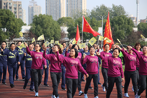 在庄严的升国旗仪式后,杨雪琴副校长致开幕词,指出运动会是对全校师生员工运动水平的一次检阅,是对学校群众性体育工作成果的一次检验,也是对广大师生员工竞争意识、团队精神、顽强意志的一次考验,更是全校师生员工精神风貌的一次全面展示。在过去的一年里,我校体育教学改革、学生体育竞赛、群众性体育活动都取得了明显进步:在江苏省第十九届运动会高校乙组田径比赛中获得3金、1银、1铜,创造了我校参加省运动会田径比赛的历史最好成绩;在江苏省第二十五届高校“校长杯”乒乓球比赛中斩获团体第六名。