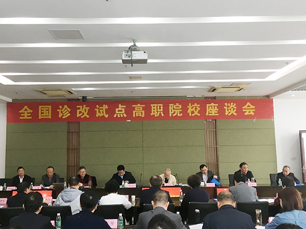 教育部职成司高职发展处任占营副处长、全国职业院校教学工作诊断与改进专家委员会主任杨应崧、副主任袁洪志、委员王毅、徐建平、张晞、江苏省高等教育学会会长丁晓昌、27所全国诊改试点院校相关院领导参加了此次座谈会。