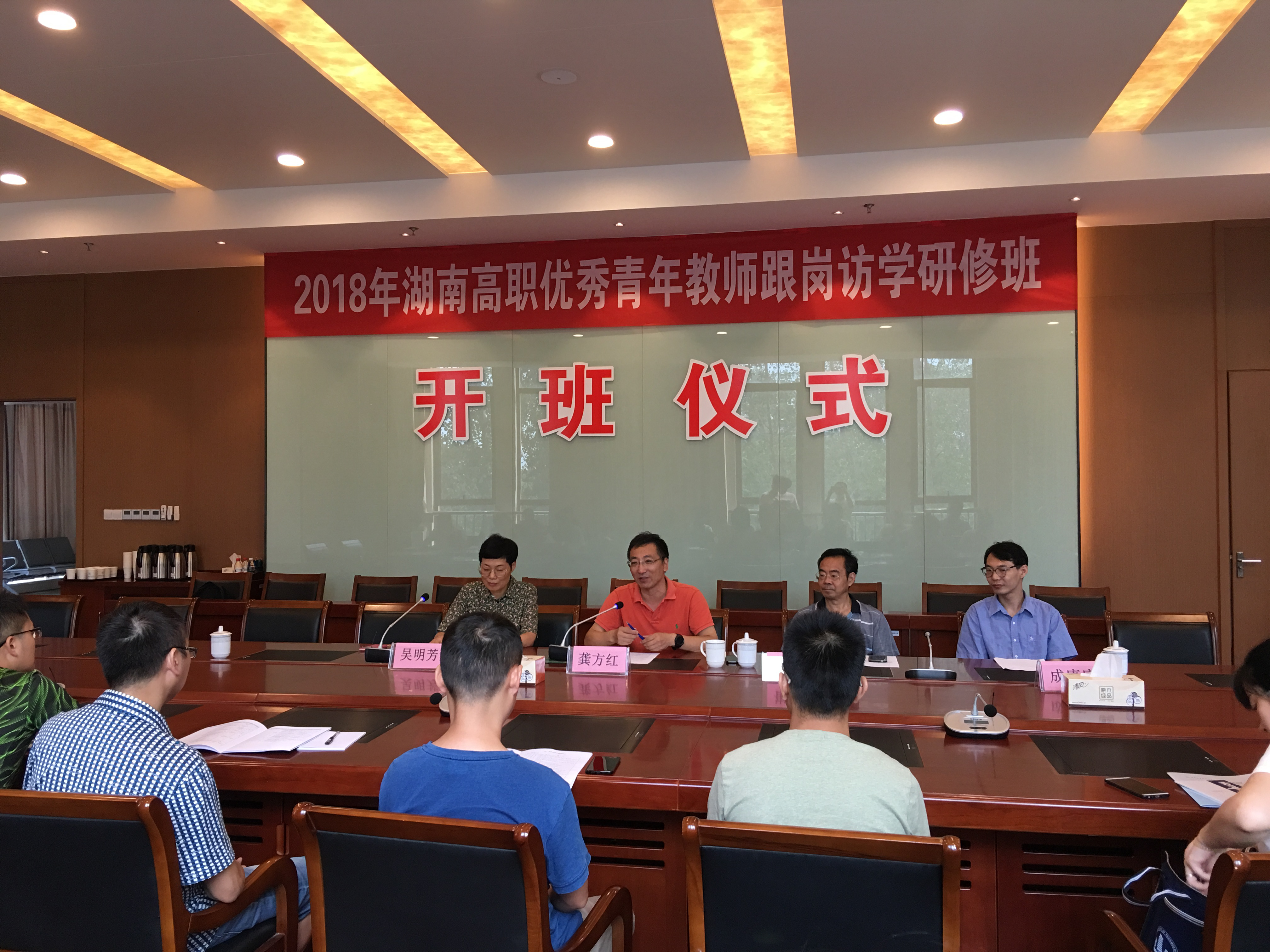 8月21日上午,由湖南省教育厅主办、球友会app最新版下载承办的“职业院校教师素质提高计划2018年国家级培训项目”——优秀青年教师跟岗访学研修班在我校顺利开班。我校校长龚方红、继续教育学院院长崔平、财经学院党总支书记吴明芳及22位学员参加了开班仪式。