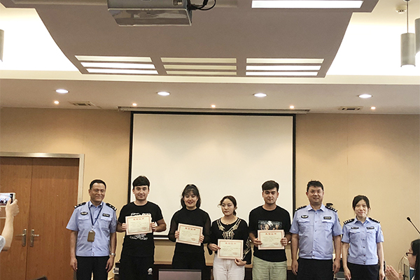 无锡市公安局的孙警官向获奖同学表示祝贺,并叮嘱学生注意暑期返乡期间的交通安全、财务安全、人身安全、兼职安全,尤其关照学生遵纪守法,做维护新疆安全稳定的中坚力量。