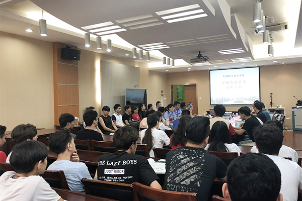 最后,学生处强伟纲处长对莅临现场的无锡市公安局领导和嘉宾表示衷心感谢。他对新疆籍少数民族学生中涌现的“预备党员”、“江苏省大学生年度人物候选人”、3名学生应征入伍等先进代表表示高度肯定,并对少部分同学存在的纪律意识不强、学习投入不够等问题予以警醒。正值期末考试来临之际,强处长希望大家好好复习考出好成绩,暑假期间回到家乡“发声亮剑”,用自己的专业知识服务家乡。
