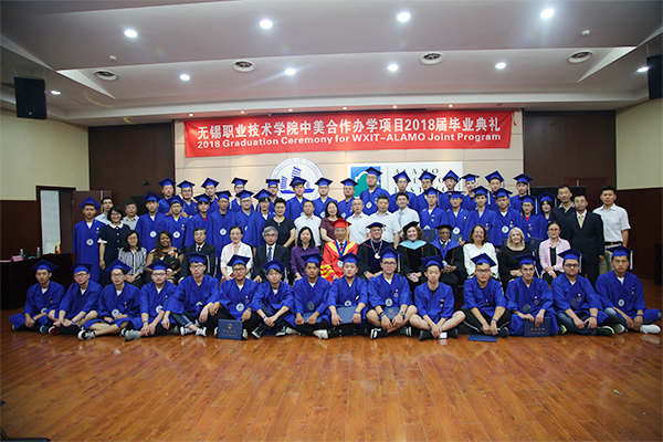 美国阿拉莫学院总校大校长布鲁斯·莱斯利博士、董事会主席伊冯·卡兹博士、董事丹佛·迈克伦登先生、国际项目部主任卡罗尔·菲曼女士,无锡市政府外事办公室副主任叶诤,校领导龚方红、华坚、冯渊、顾京以及国际教育学院、机械技术学院、相关职能部门主要负责人、专业教师共同见证了我校与美国阿拉莫圣菲利普学院合作办学项目首届毕业生迈向人生新征程的庄严时刻。