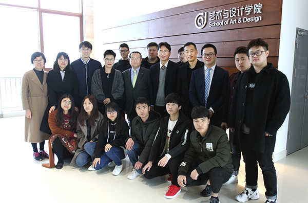 寺下阳一校长(后排左六)与艺术与设计学院师生在一起