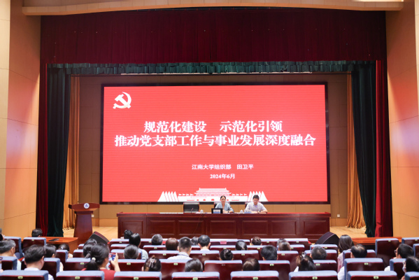 开班式结束后,江南大学党委组织部副部长田卫平为全体参训学员作题为“规范化建设、示范化引领,推动党支部工作与事业发展深度融合”专题讲座。